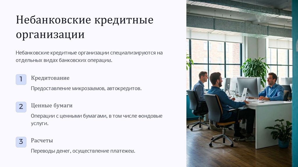 Небанковские кредитные организации специализируются на