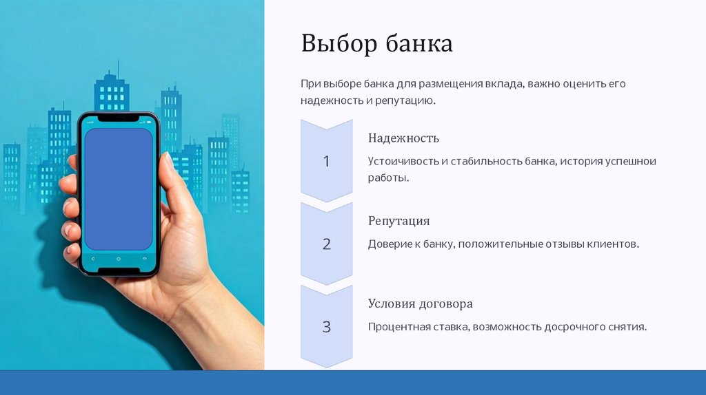 Выбор банкаПри выборе банка для размещения вклада, важно оценить его