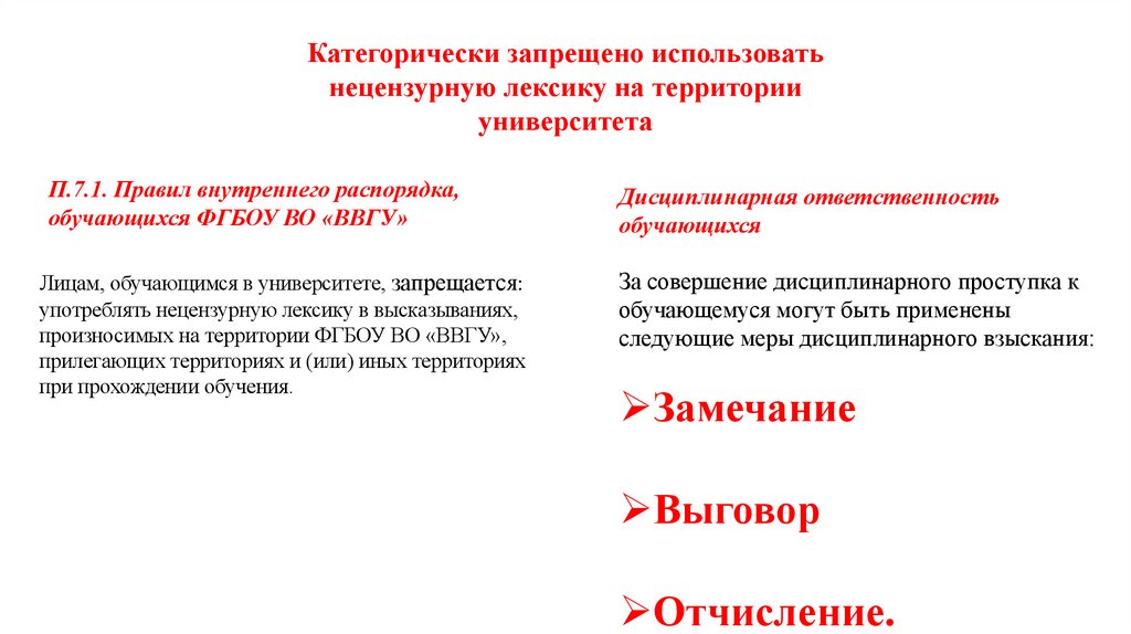 произносимых на территории ФГБОУ ВО «ВВГУ»,