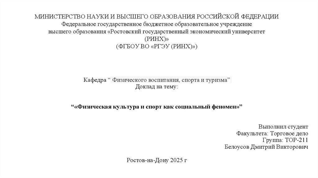 (ФГБОУ ВО «РГЭУ (РИНХ)»)