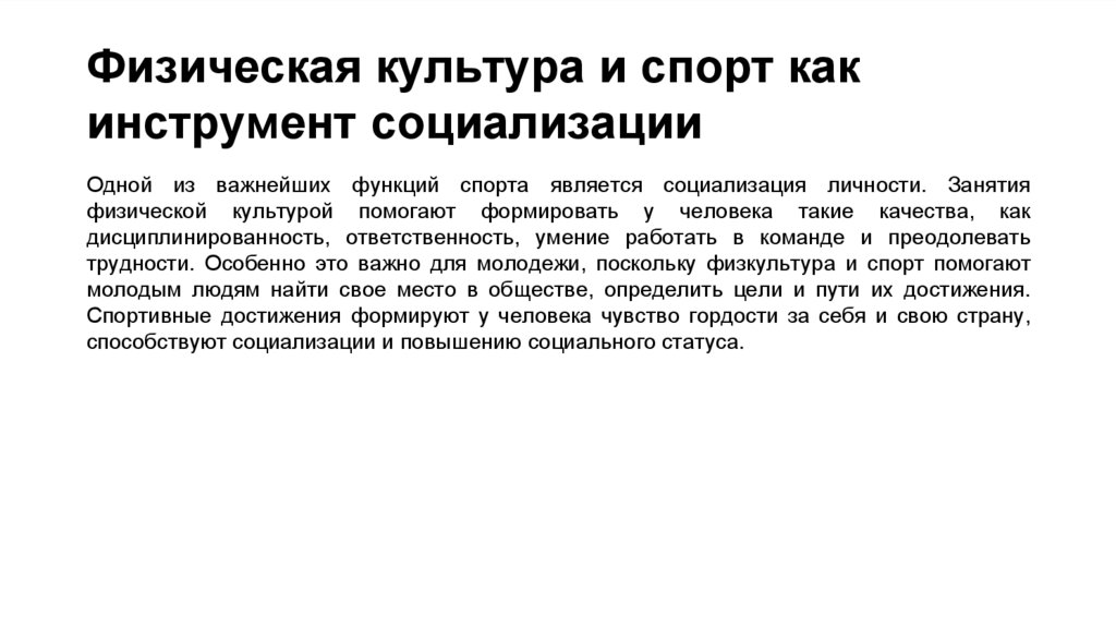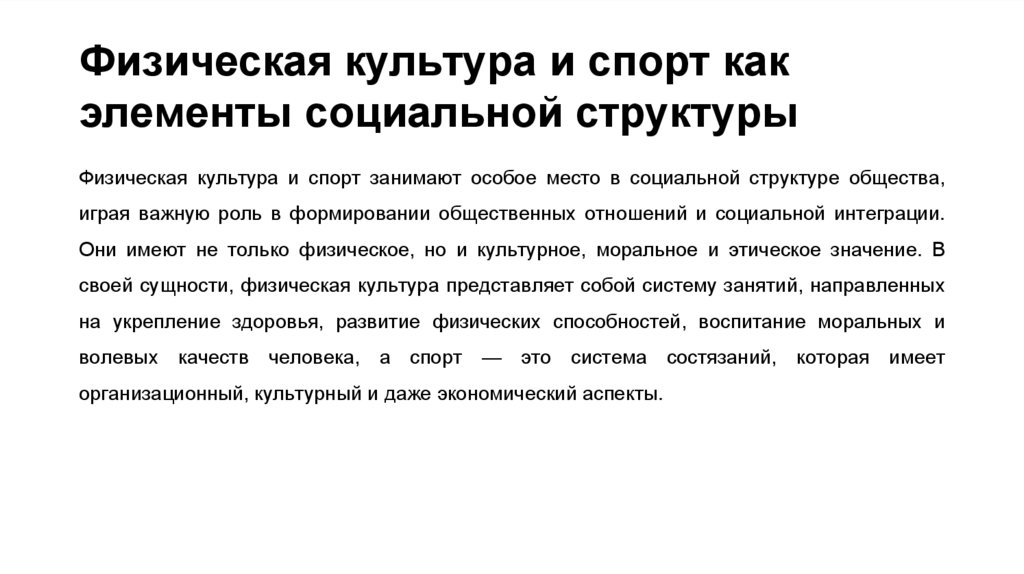 Физическая культура и спорт занимают особое место в социальной структуре общества,