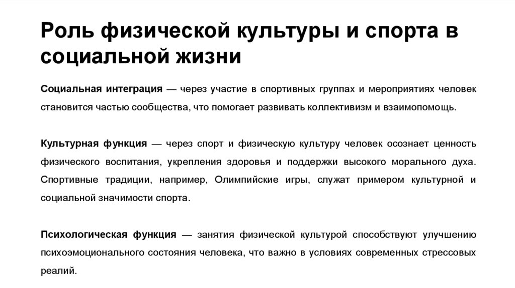 физической выносливости, но и как важные элементы социальной жизни, которые могут