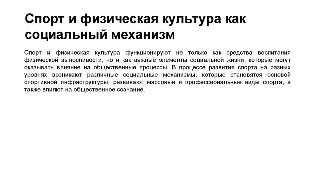 оказывать влияние на общественные процессы. В процессе развития спорта на разных