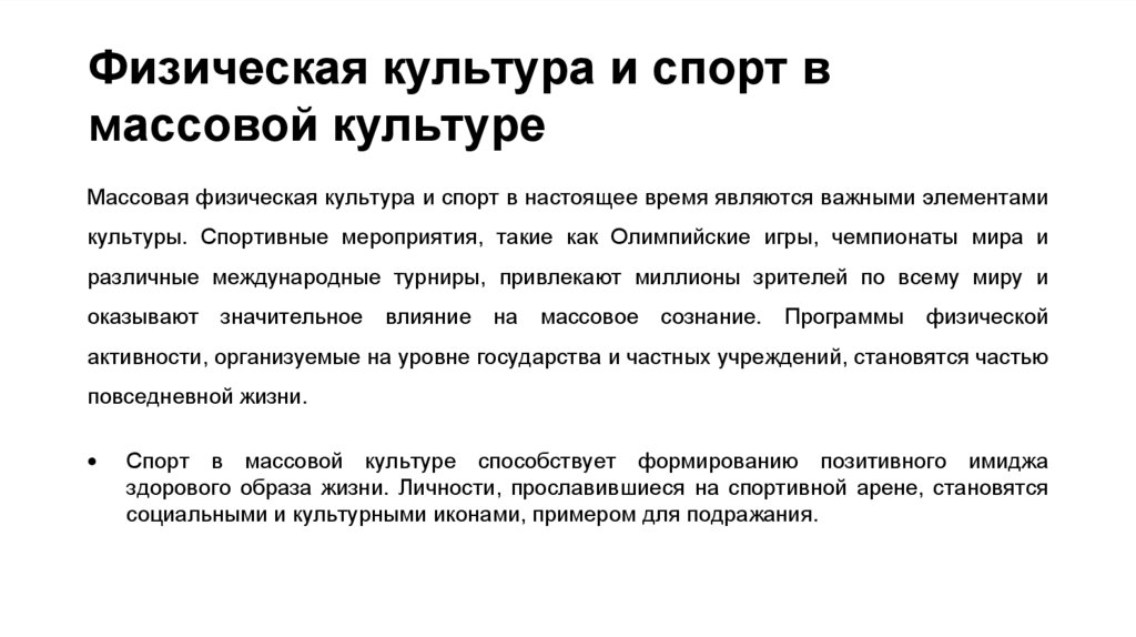 Массовая физическая культура и спорт в настоящее время являются важными элементами