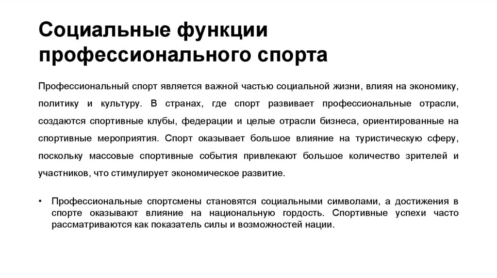 Профессиональный спорт является важной частью социальной жизни, влияя на экономику,