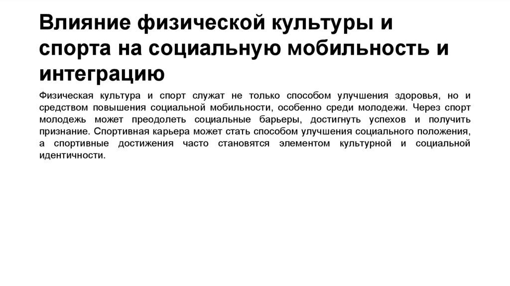 средством повышения социальной мобильности, особенно среди молодежи. Через спорт