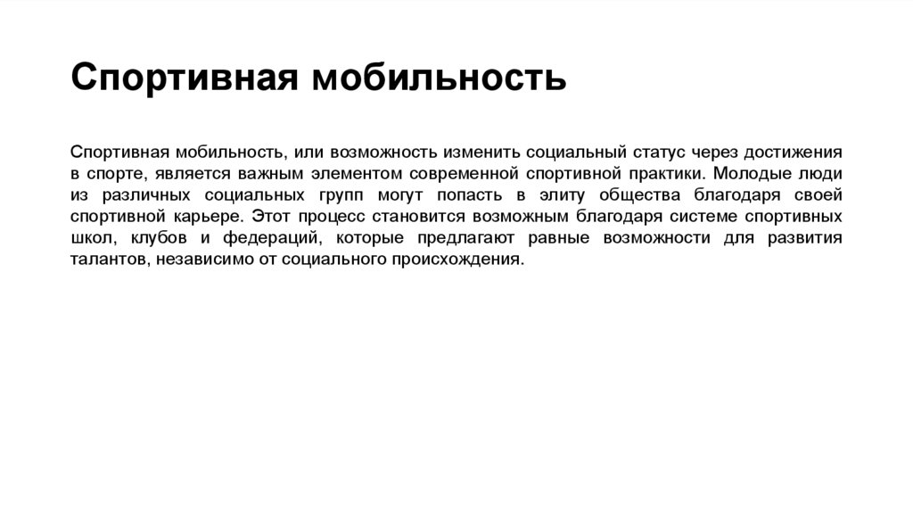 Спортивная мобильностьСпортивная мобильность, или возможность изменить социальный статус через достижения