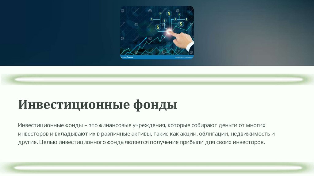 Инвестиционные фондыИнвестиционные фонды — это финансовые учреждения, которые собирают деньги от многих