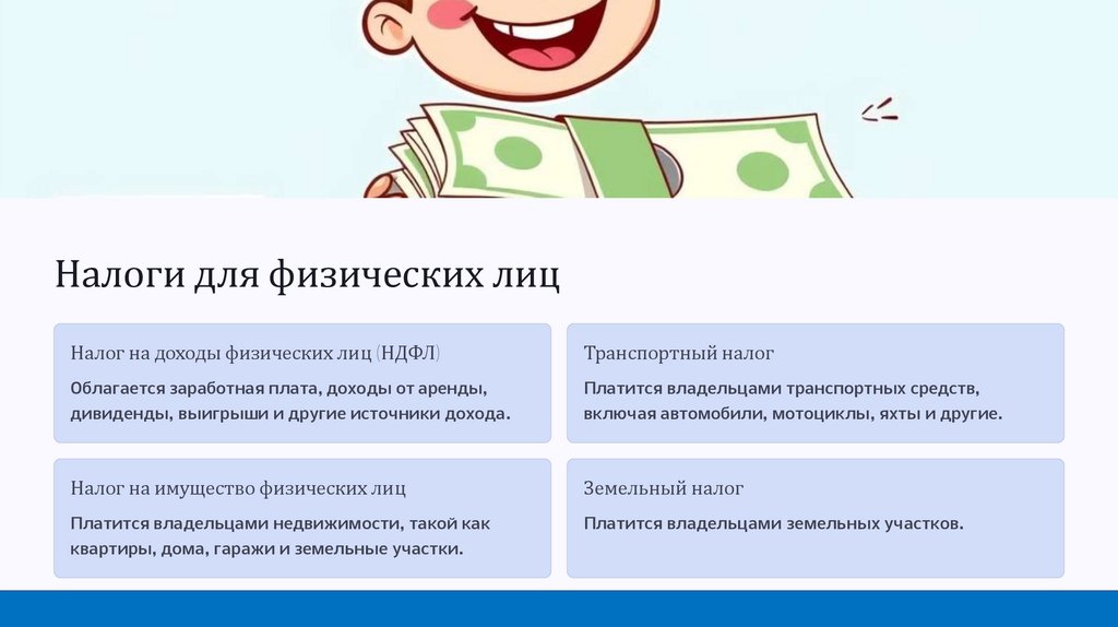 Налоги для физических лицНалог на доходы физических лиц (НДФЛ)