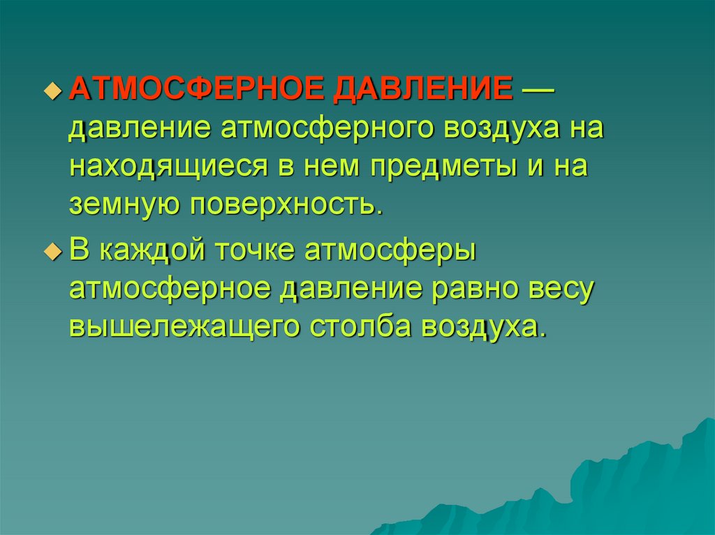 АТМОСФЕРНОЕ ДАВЛЕНИЕ —давление атмосферного воздуха на