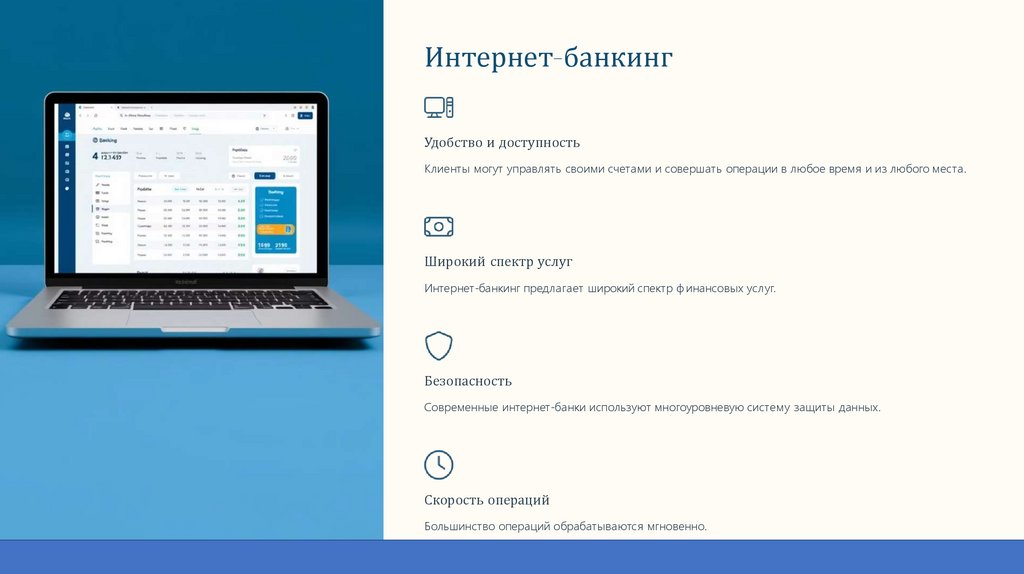 Интернет-банкинг предлагает широкий спектр ф инансовых услуг.