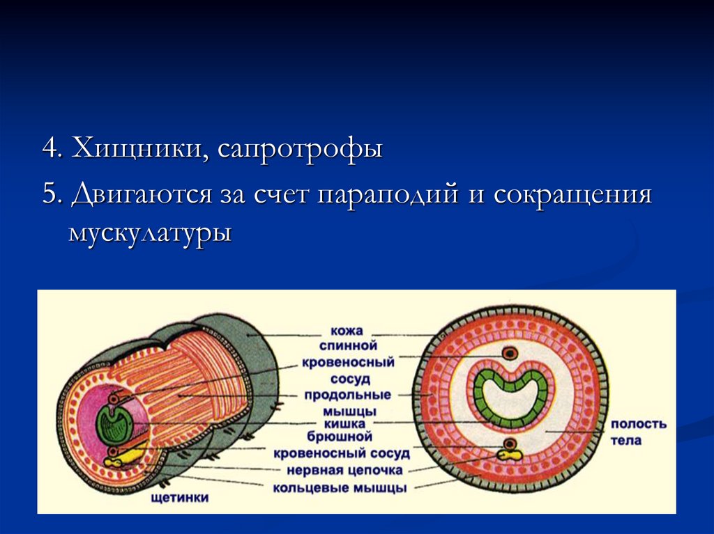 4. Хищники, сапротрофы5. Двигаются за счет параподий и сокращения