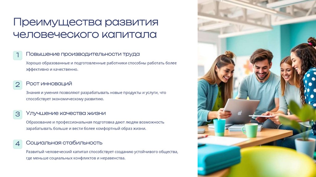 Развитый человеческий капитал способствует созданию устойчивого общества,