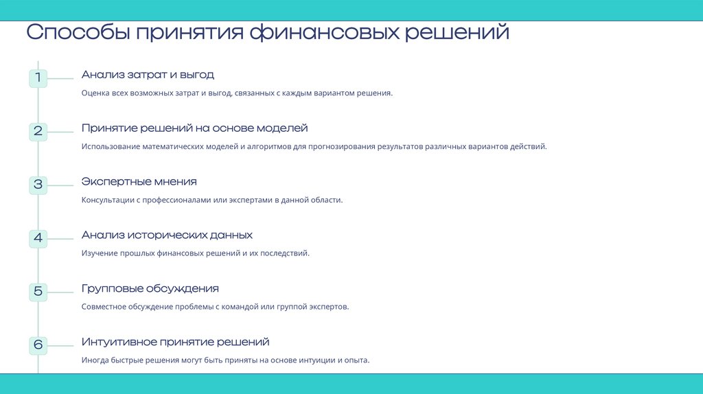 Оценка всех возможных затрат и выгод, связанных с каждым вариантом решения.