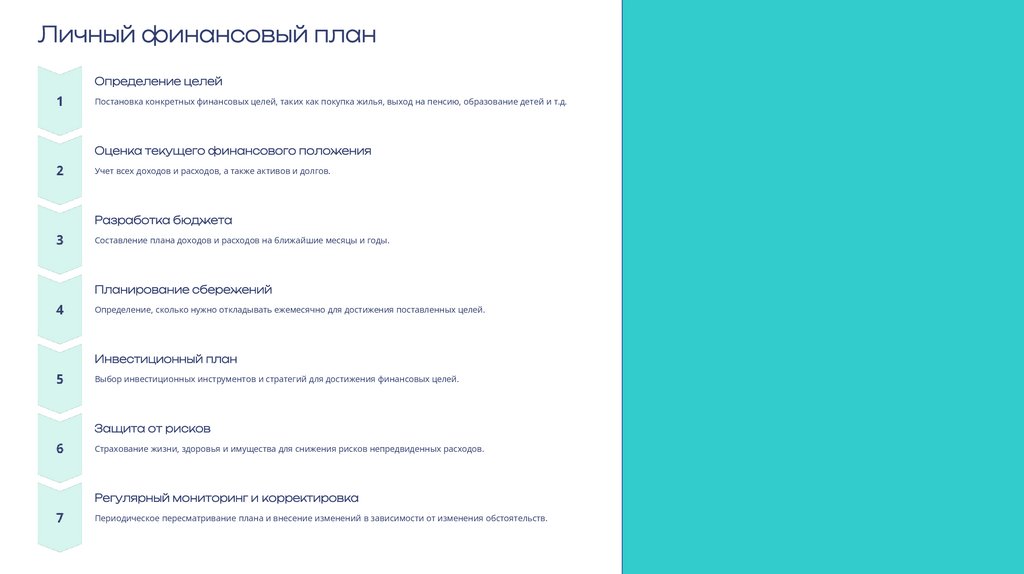 Постановка конкретных финансовых целей, таких как покупка жилья, выход на пенсию, образование детей и т.д.