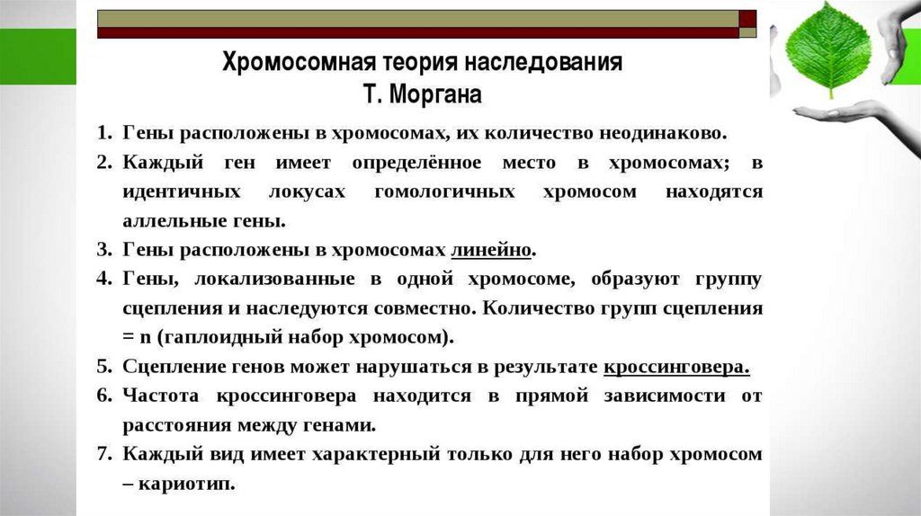 1. Гены, локализованные в одной хромосоме,образуют одну группу сцепления и