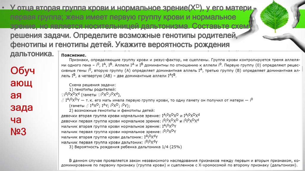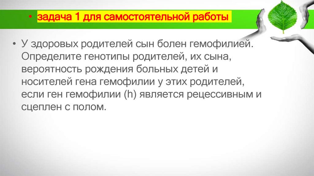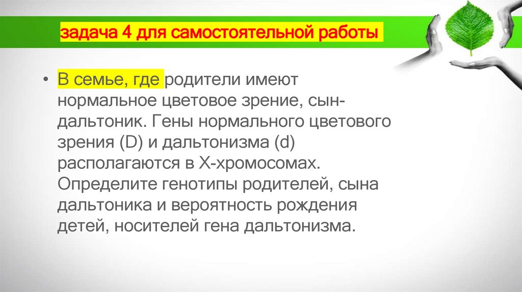 задача 4 для самостоятельной работы• В семье, где родители имеют