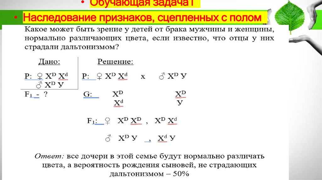 • 1. У супругов Анны и Павла, имеющих нормальное зрение,родились два сына и две дочери. У первой дочери зрение