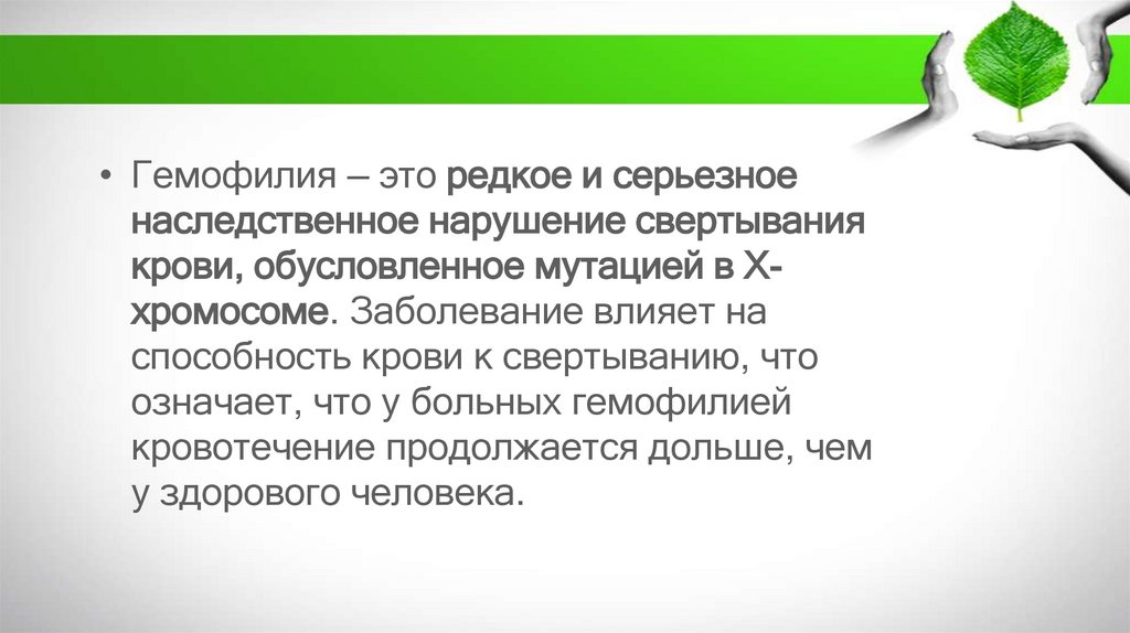 • Гемофилия — это редкое и серьезноенаследственное нарушение свертывания