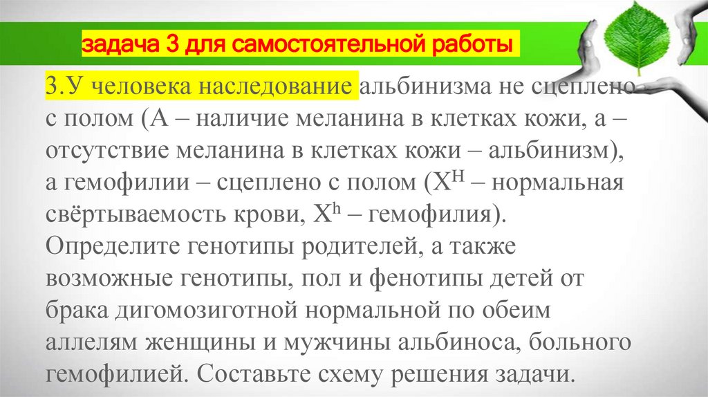 задача 3 для самостоятельной работы3.У человека наследование альбинизма не сцеплено