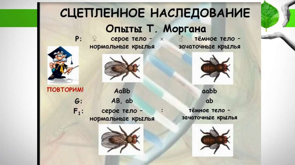 Сцепленное наследование генов не подчиняетсязаконам Г. Менделя.