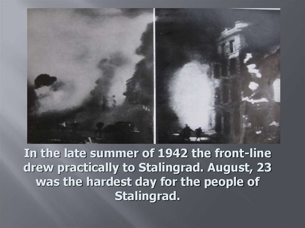 In the late summer of 1942 the front-linedrew practically to Stalingrad. August, 23