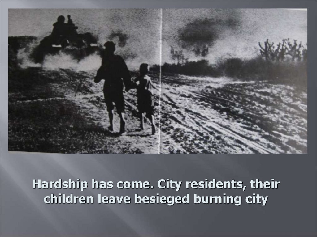 Hardship has come. City residents, theirchildren leave besieged burning city