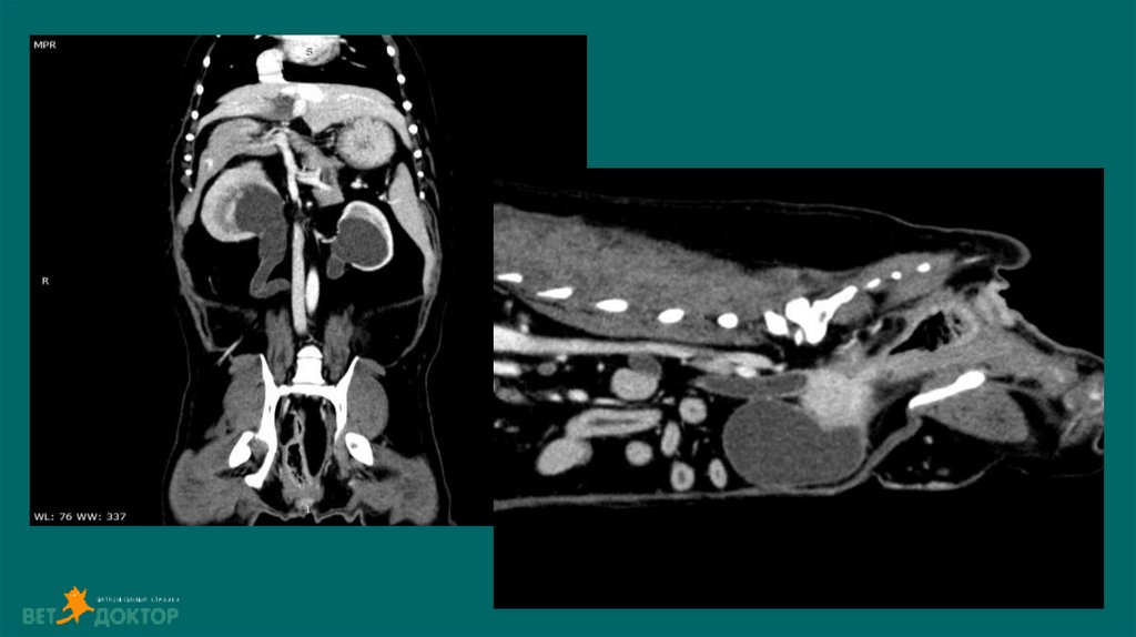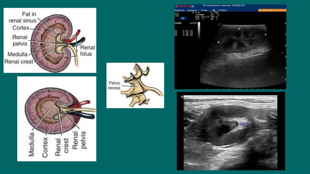 Размер и симметричность почек, размер и топографию мочевого пузыря, размер иположение репродуктивных органов.