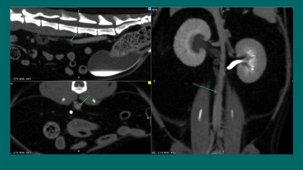• Введение стерильного йодсодержащего контраста в расчете 10мл/кг( разбавлен стерильным