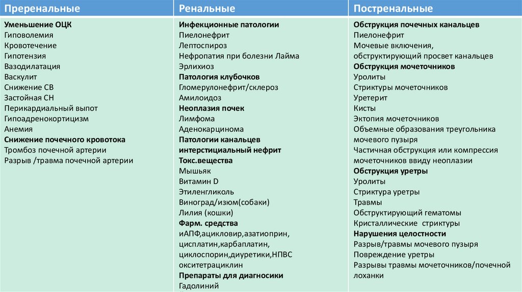 Цель : коррекция нарушения почечной гемодинамики/восстановление водного баланса