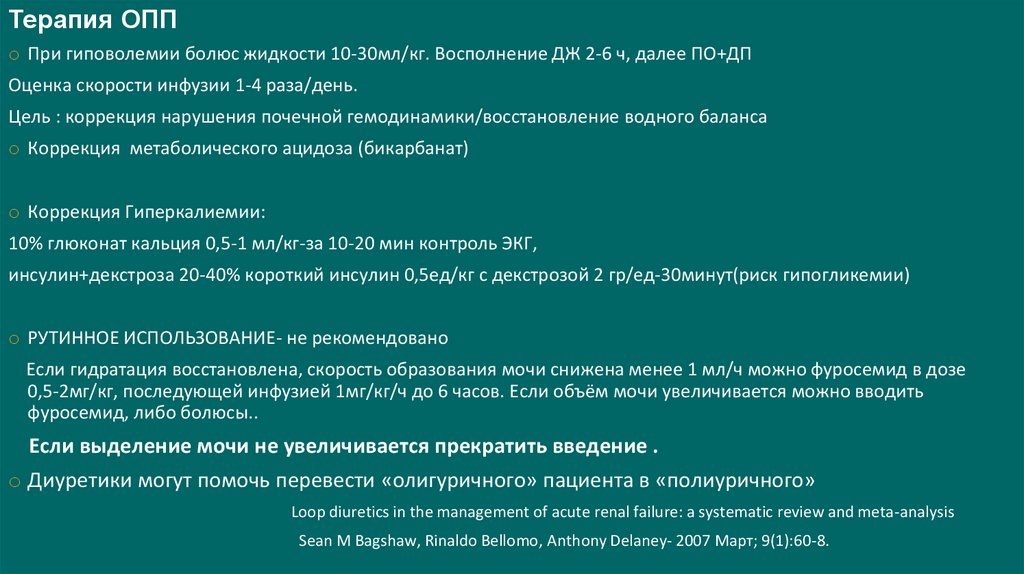 o Диуретики могут помочь перевести «олигуричного» пациента в «полиуричного»