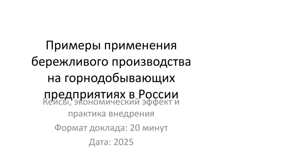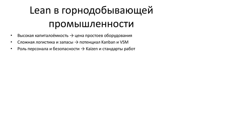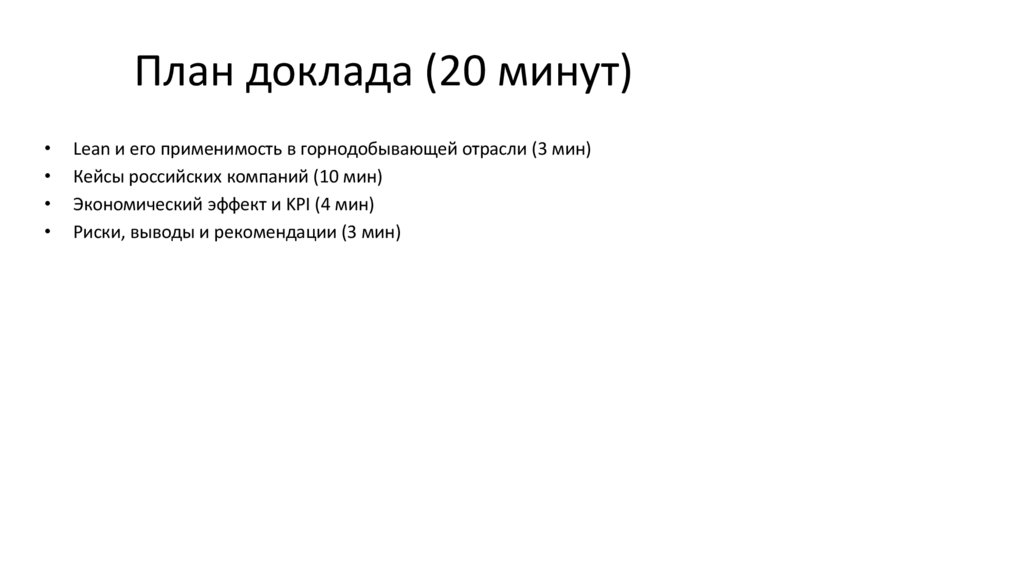 План доклада (20 минут)Lean и его применимость в горнодобывающей отрасли (3 мин)