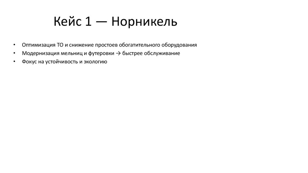 Кейс 1 — НорникельОптимизация ТО и снижение простоев обогатительного оборудования
