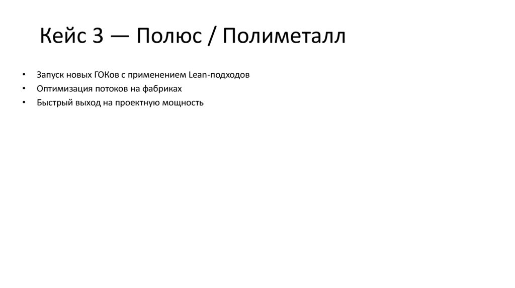 Кейс 3 — Полюс / ПолиметаллЗапуск новых ГОКов с применением Lean-подходов