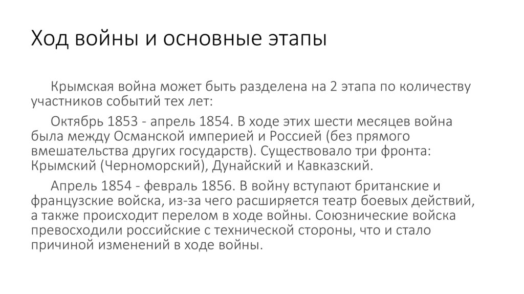 Ход войны и основные этапыКрымская война может быть разделена на 2 этапа по количеству