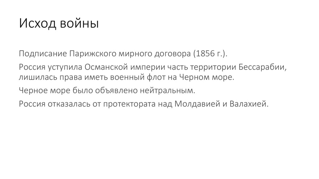 Исход войныПодписание Парижского мирного договора (1856 г.).