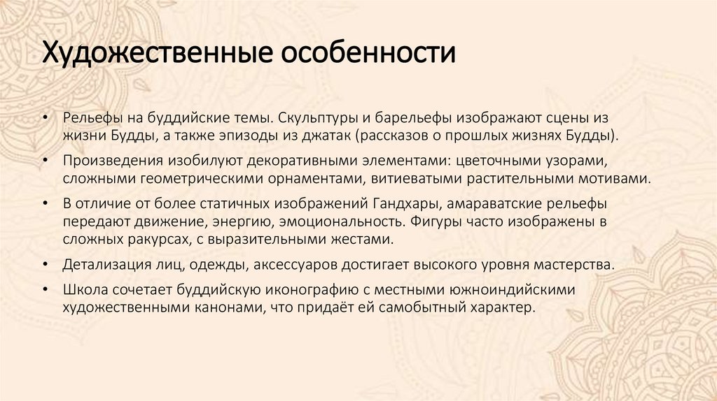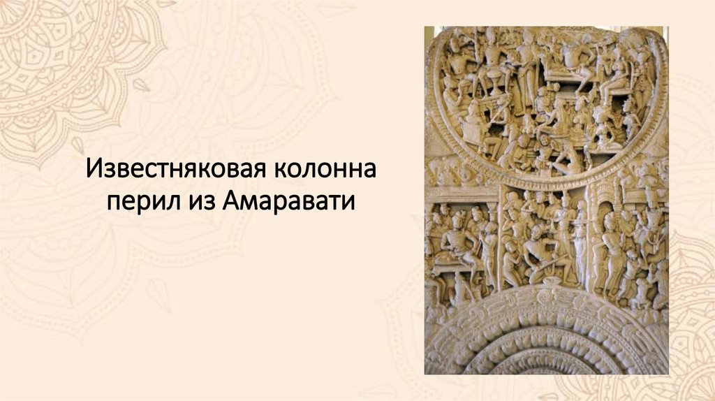 • В отличие от более статичных изображений Гандхары, амараватские рельефы