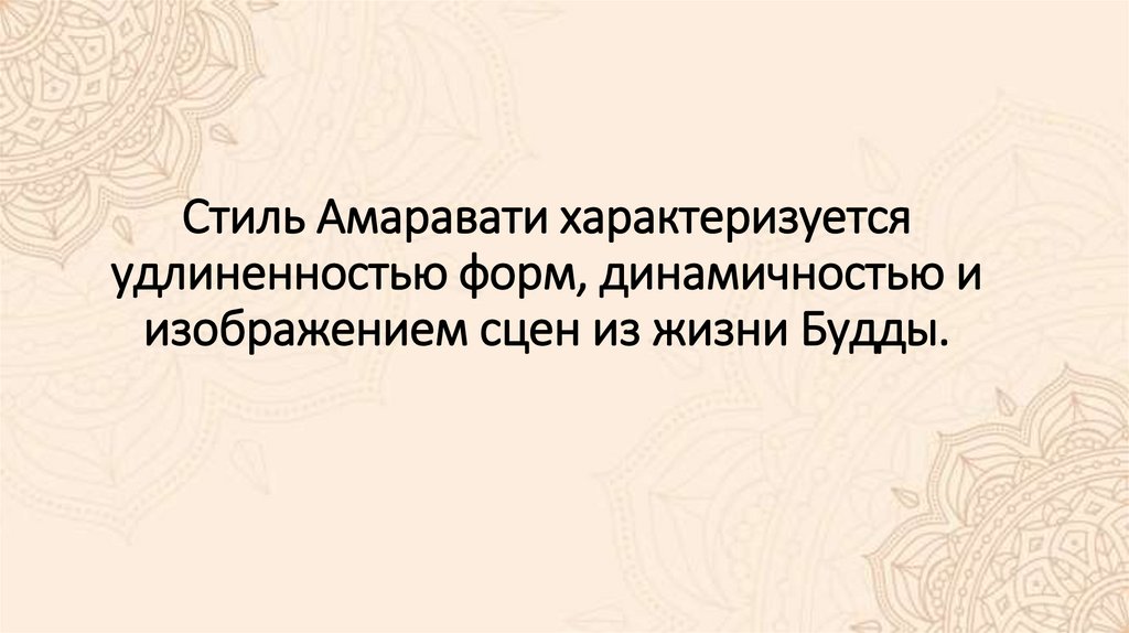 Стиль Амаравати характеризуетсяудлиненностью форм, динамичностью и