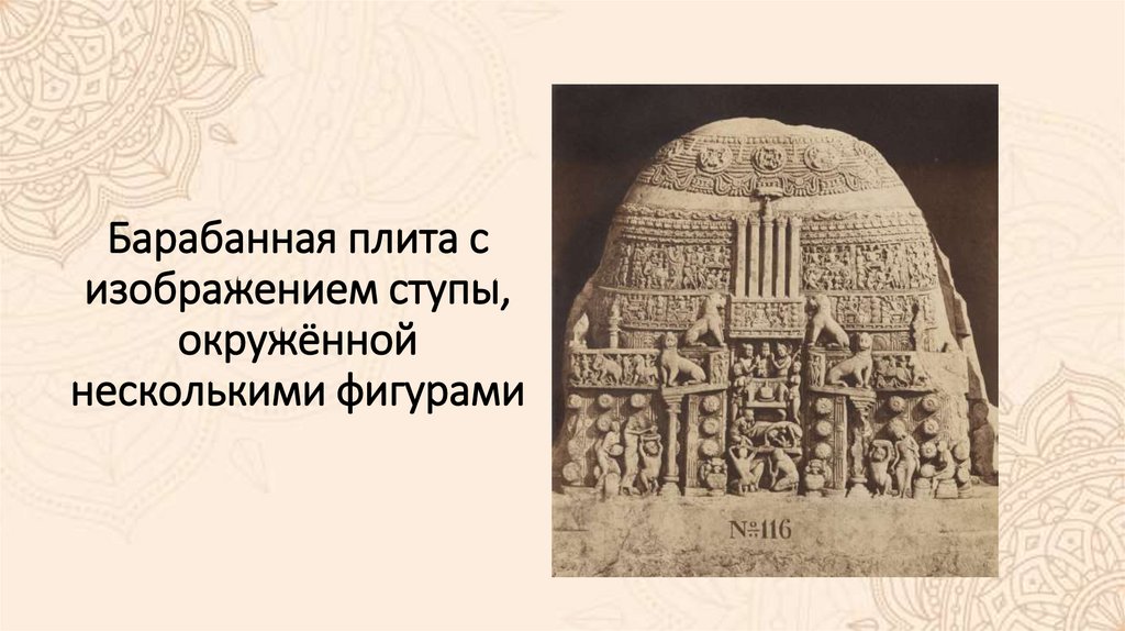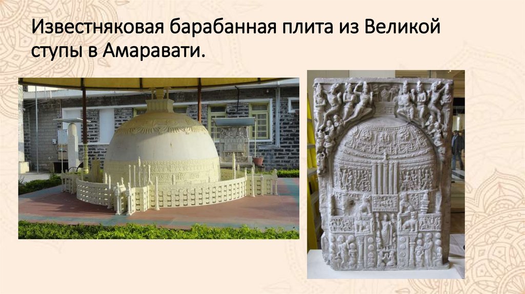 Известняковая барабанная плита из Великойступы в Амаравати.