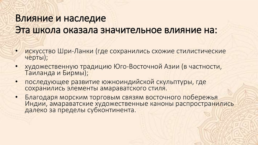 • искусство Шри-Ланки (где сохранились схожие стилистические