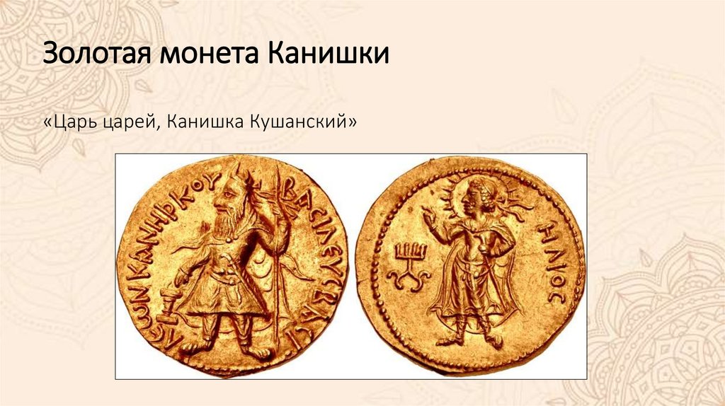 Золотая монета Канишки«Царь царей, Канишка Кушанский»