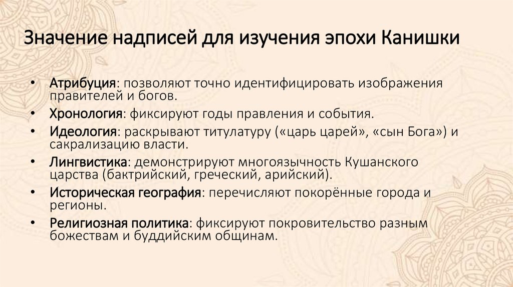 Значение надписей для изучения эпохи Канишки• Атрибуция: позволяют точно идентифицировать изображения