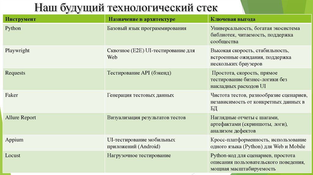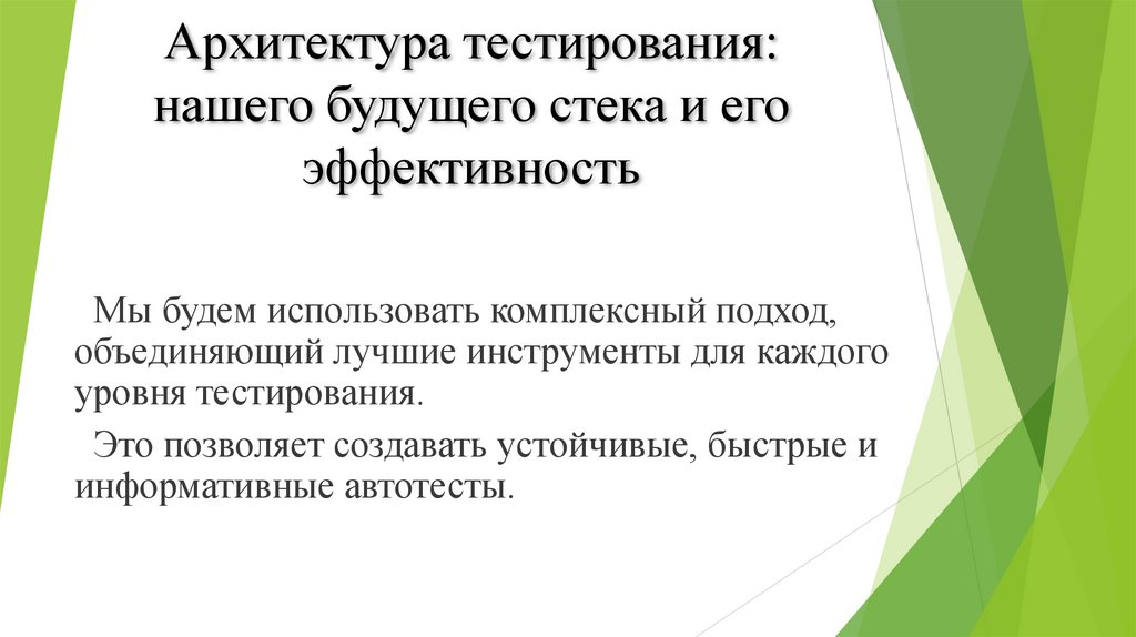 1. Архитектура тестирования: нашего будущего стека и его эффективность
