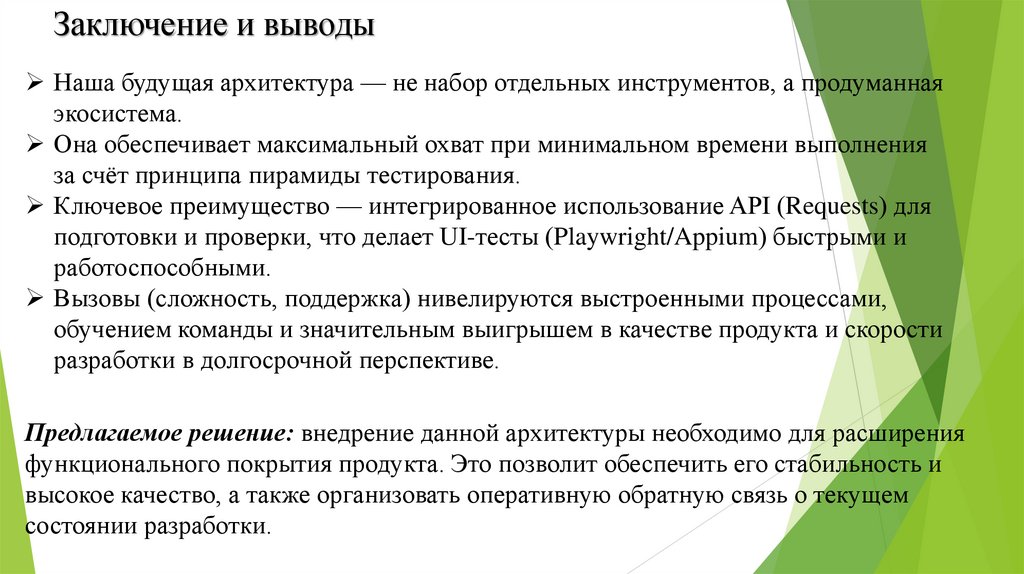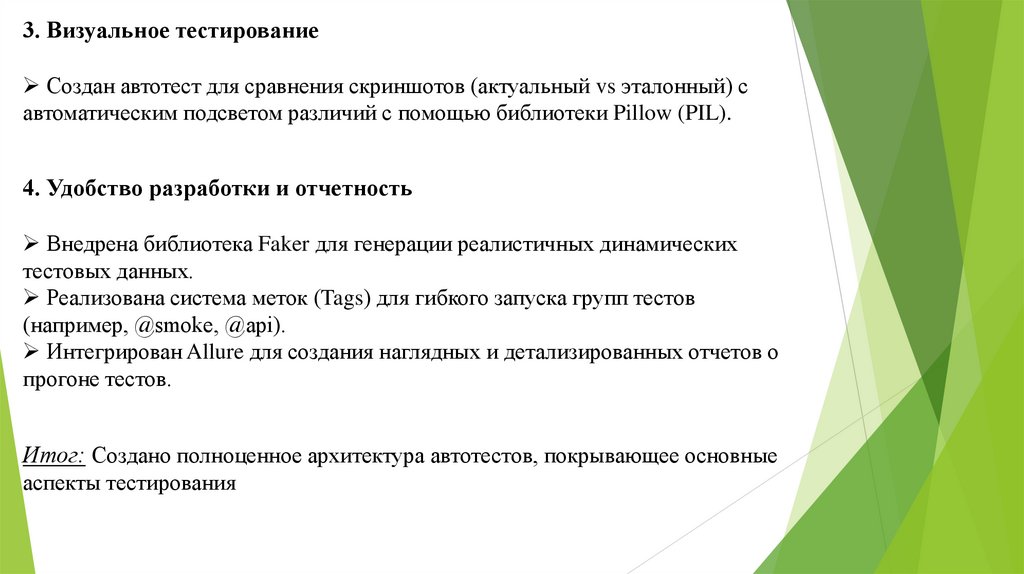 Итог: Создано полноценное архитектура автотестов, покрывающее основные