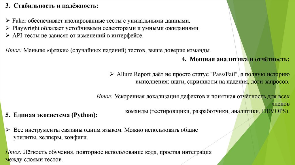 Итог: Меньше «флаки» (случайных падений) тестов, выше доверие команды.