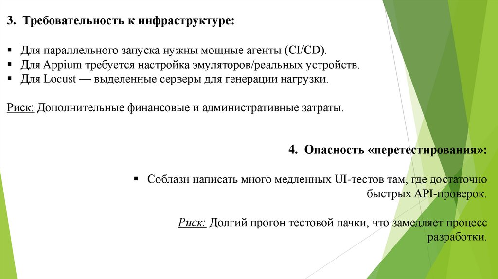 3. Требовательность к инфраструктуре:Для параллельного запуска нужны мощные агенты (CI/CD).