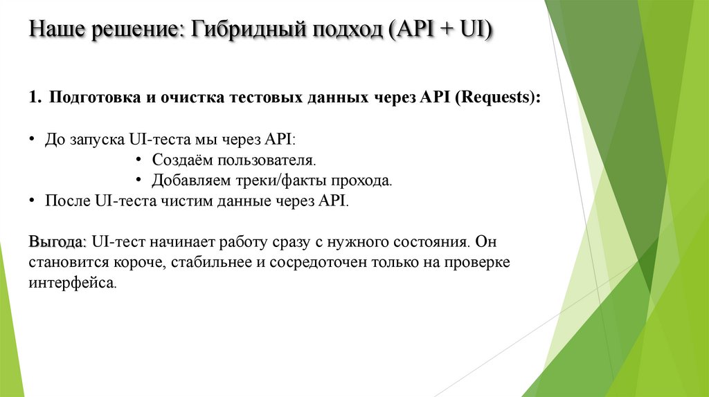 Наше решение: Гибридный подход (API + UI)1. Подготовка и очистка тестовых данных через API (Requests):