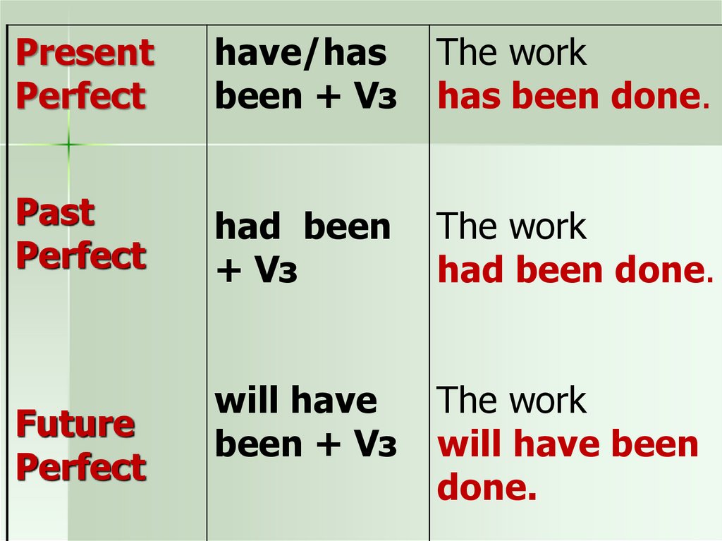 В качестве смыслового глагола (V) впассивном залоге могут использоваться только