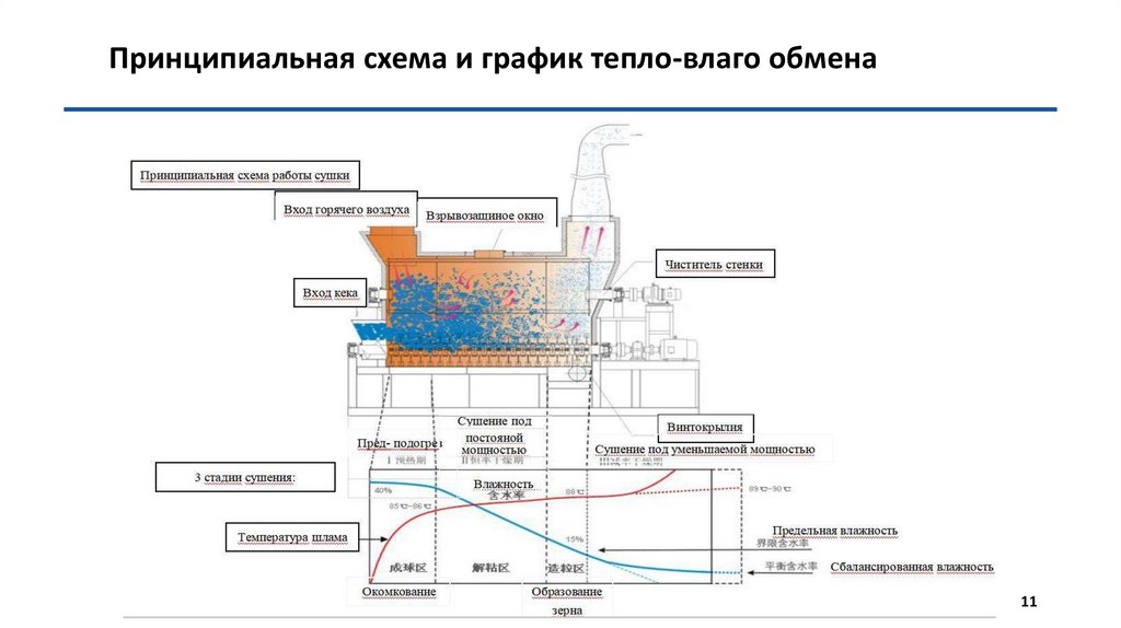 Короткое время нахождения шлама в сушке, высокая эффективность теплообмена с