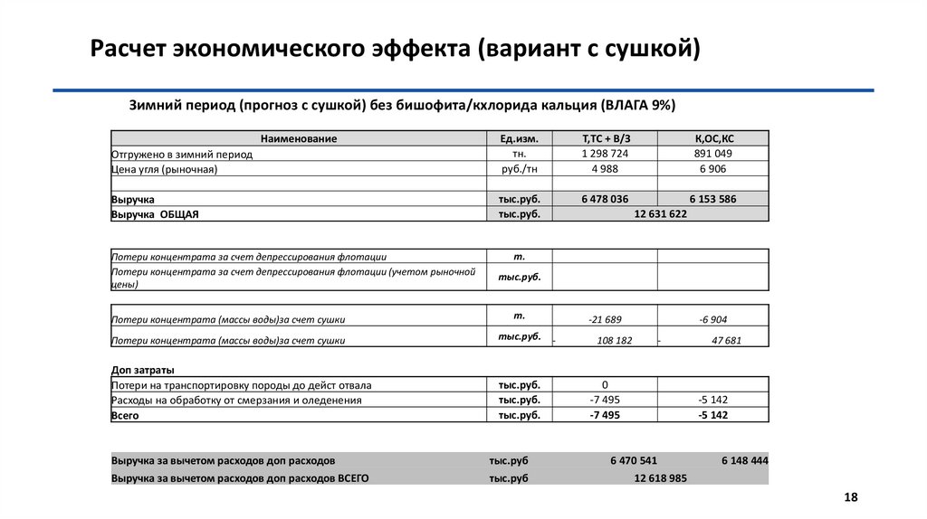 Расчет экономического эффекта (вариант с сушкой)Зимний период (прогноз с сушкой) без бишофита/кхлорида кальция (ВЛАГА 9%)